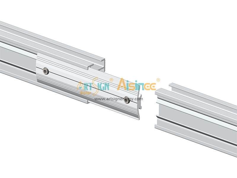 Закрепите соединительный элемент направляющей AS-RS-09, вставив его в алюминиевые профили и затянув винты M8 с плоской головкой. Этот метод внутреннего крепления обеспечивает плотное и прочное соединение в месте соединения солнечной направляющей.
